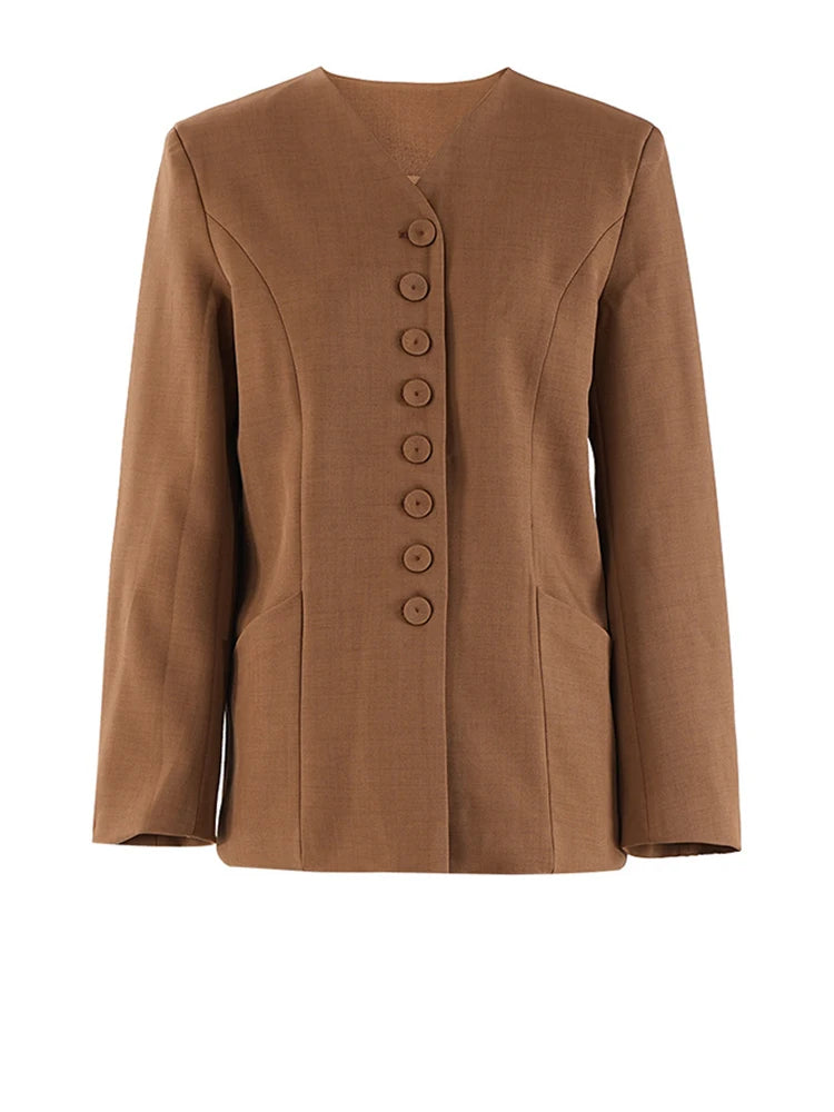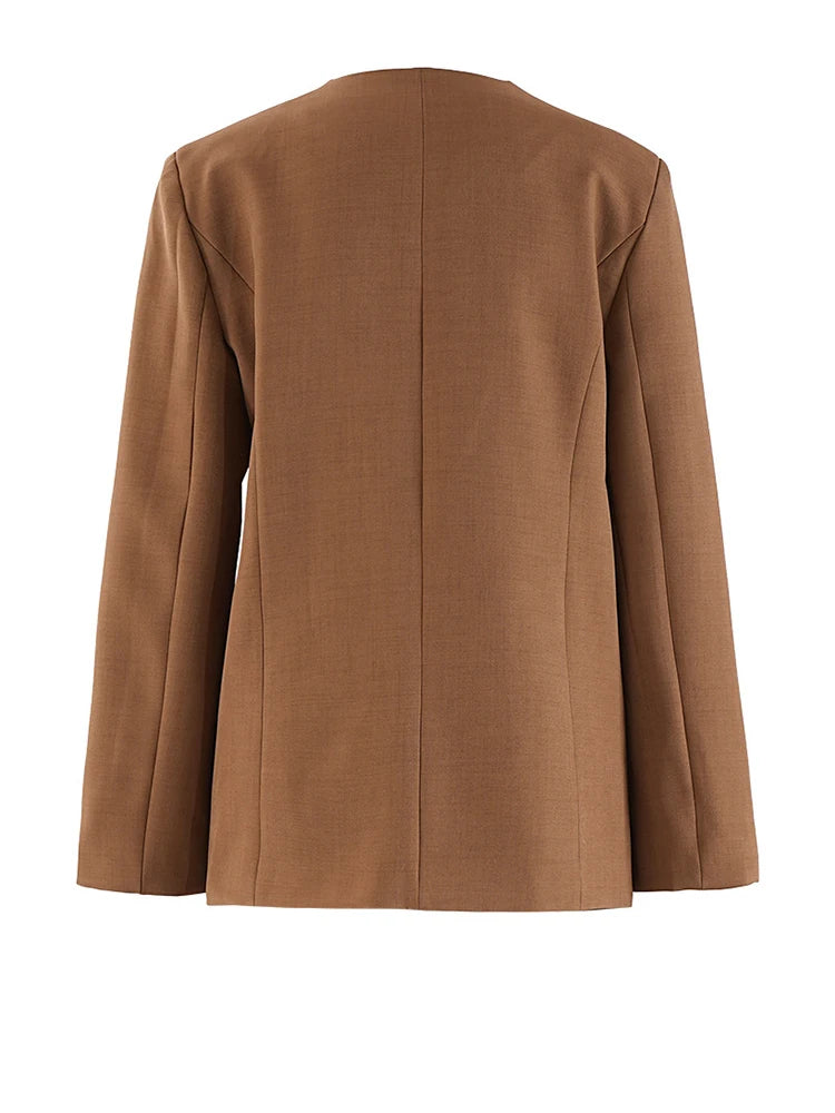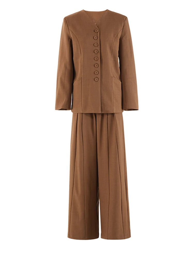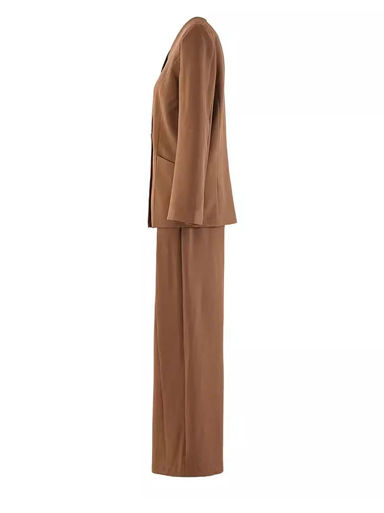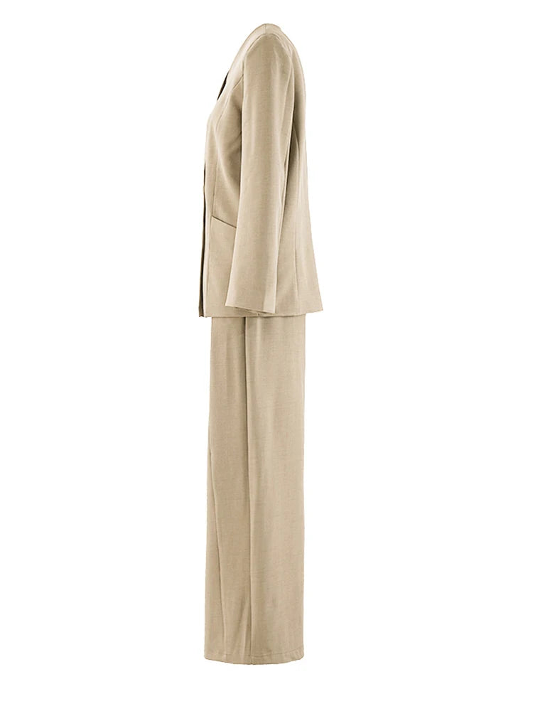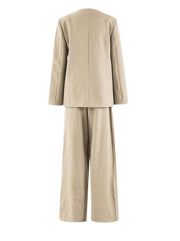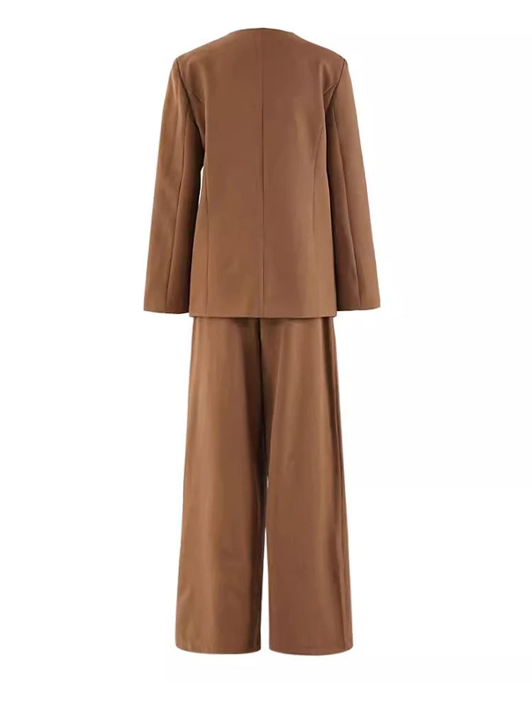 Oversized Collarless Blazer and Pleated Wide Leg Pants Set