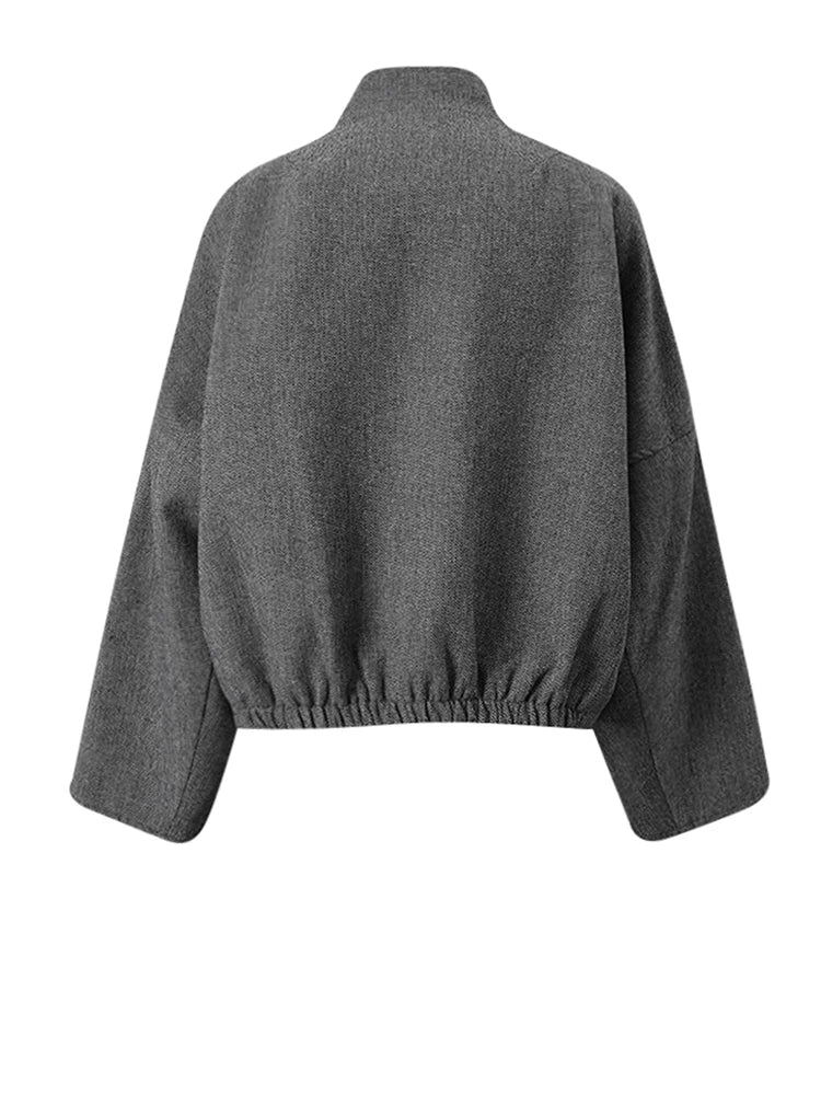 Oversized High Neck Wool Jacket with Button Front in Gray