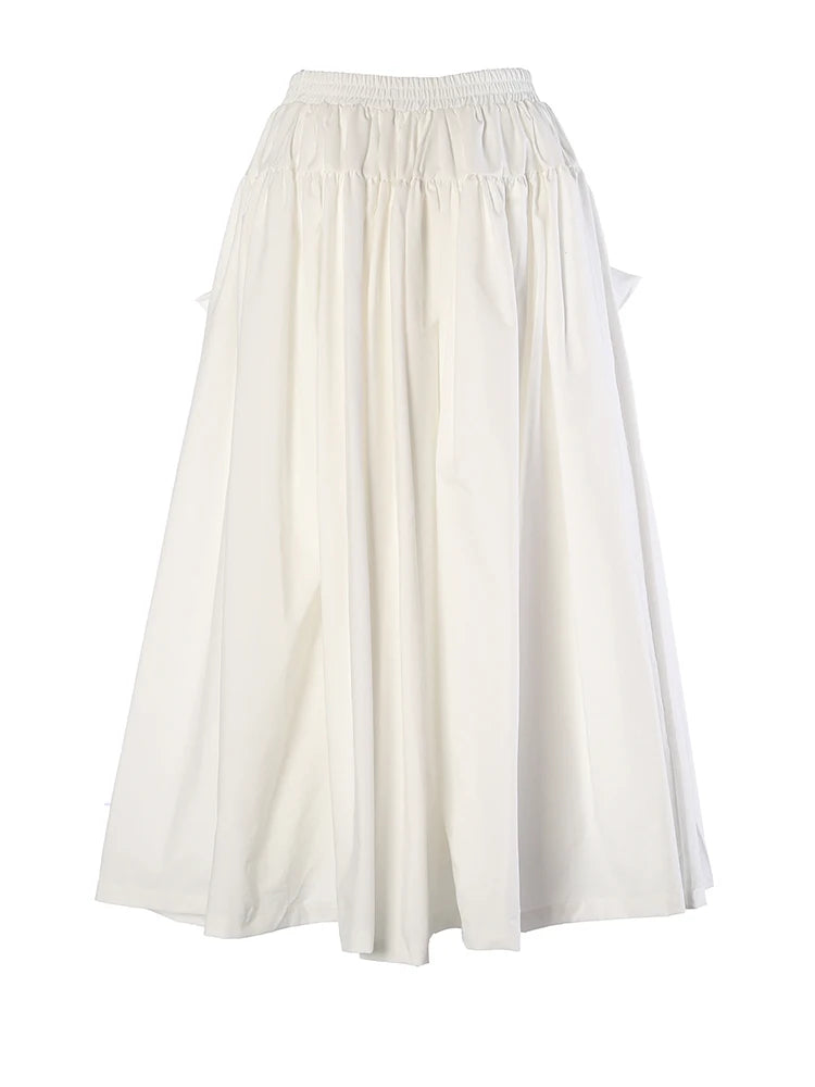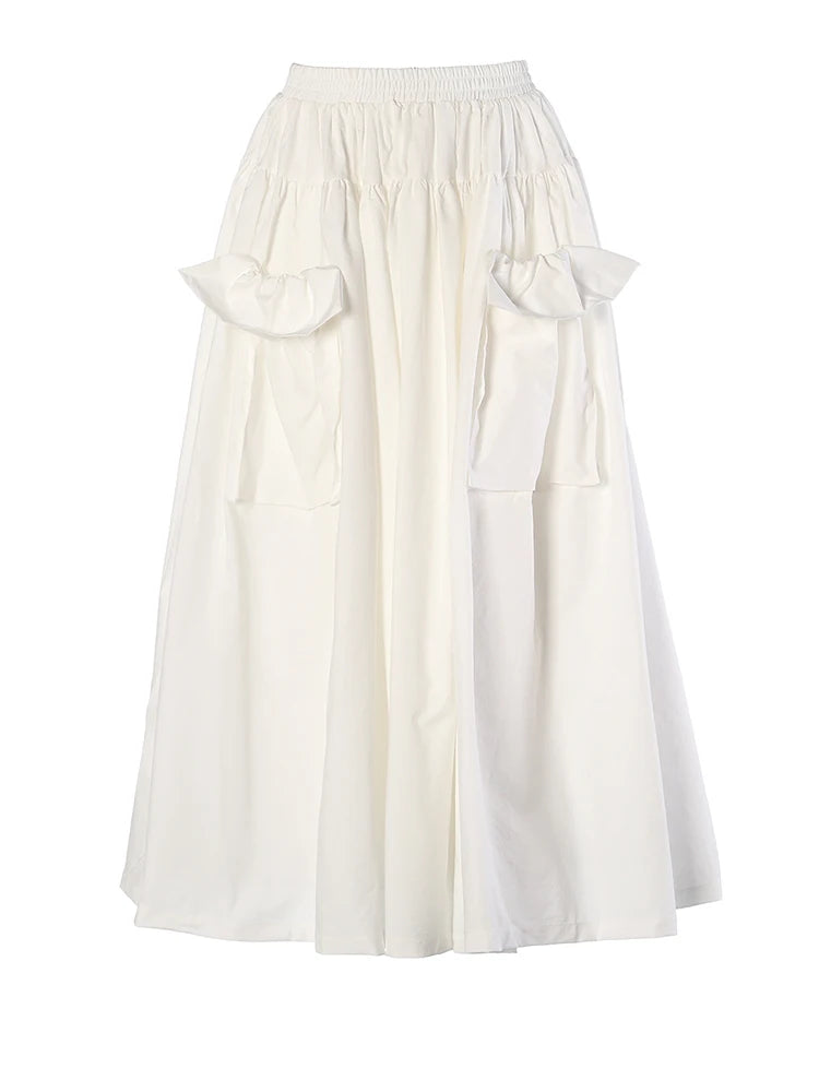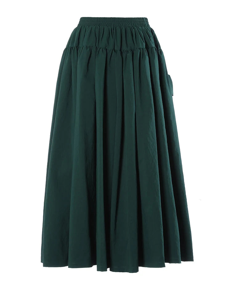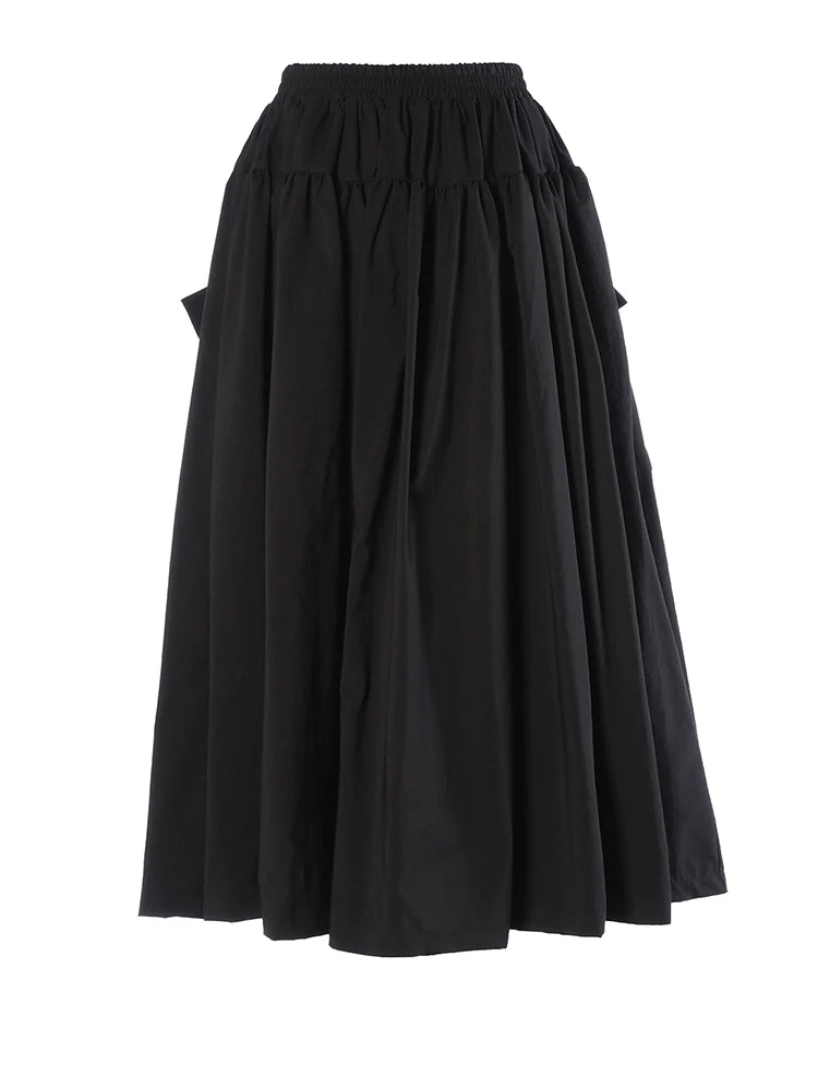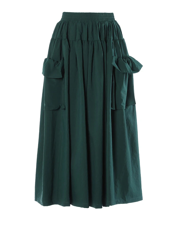 Pocket Detail Pleated Midi Skirt with Elasticized Waist