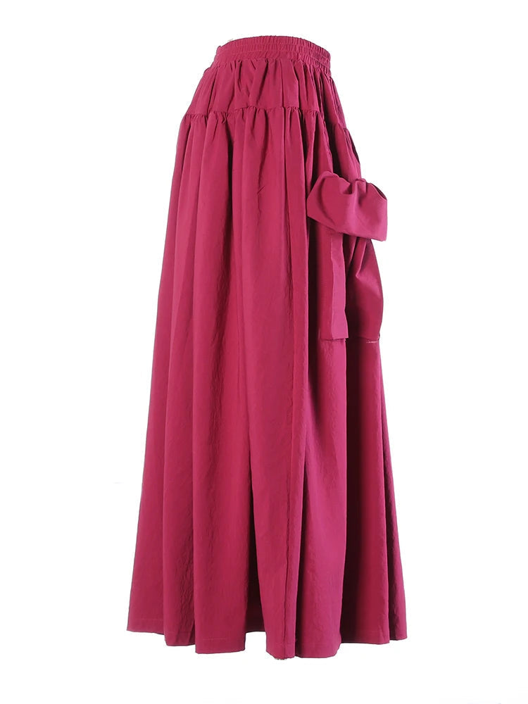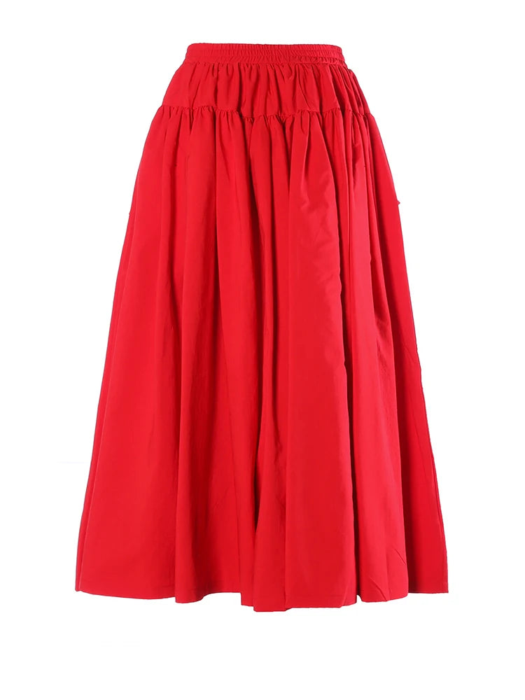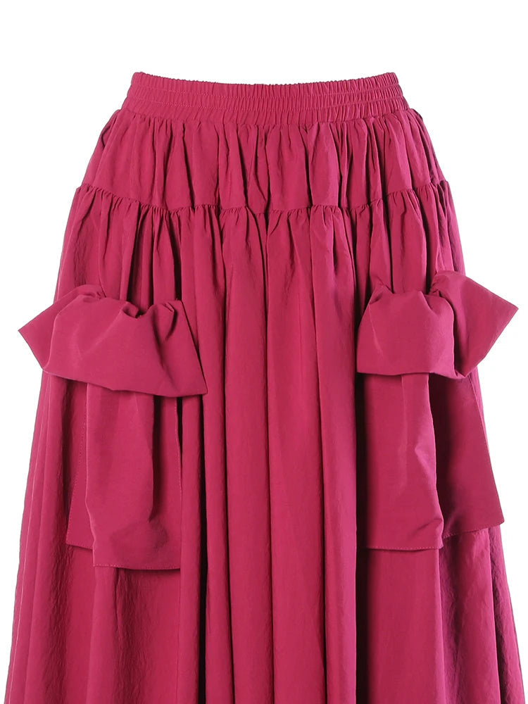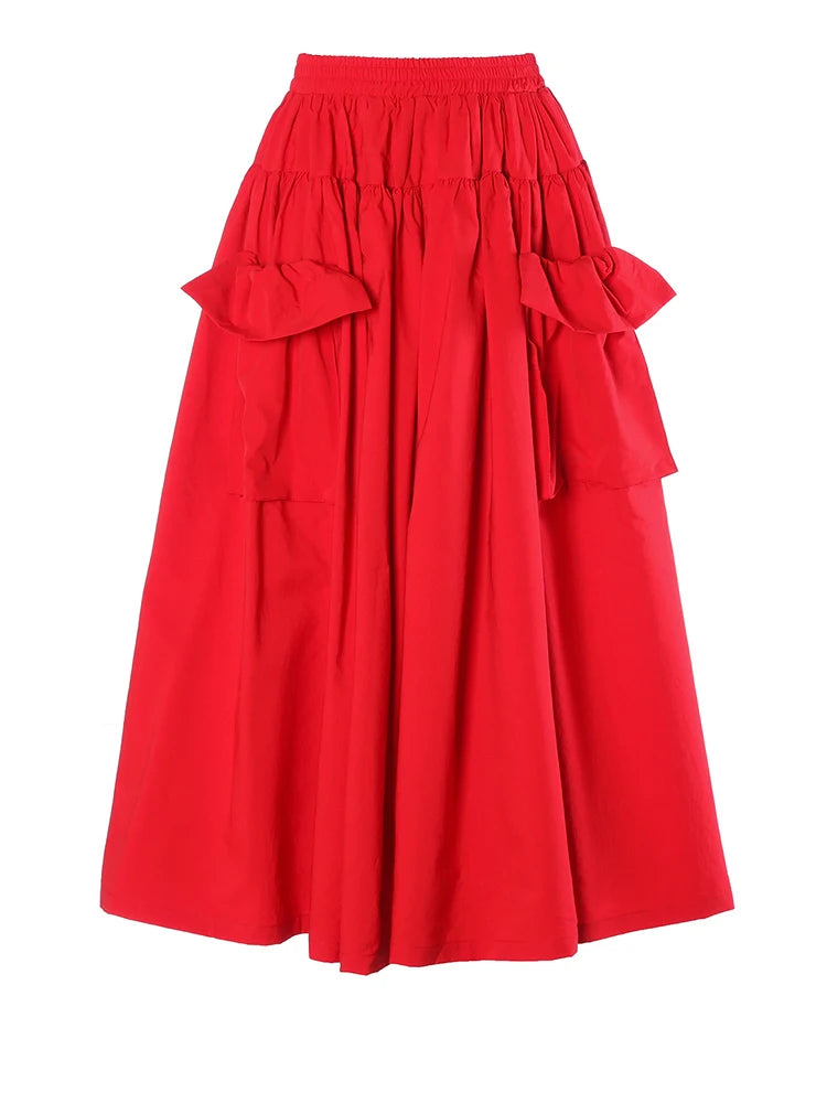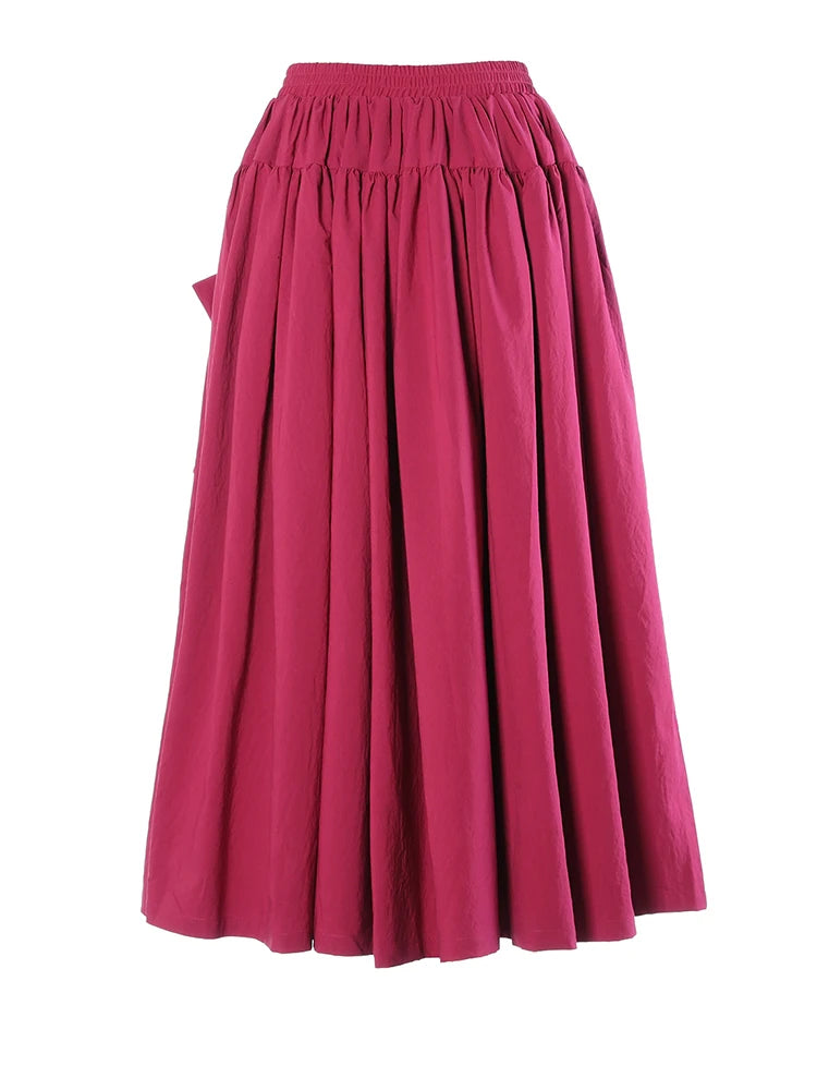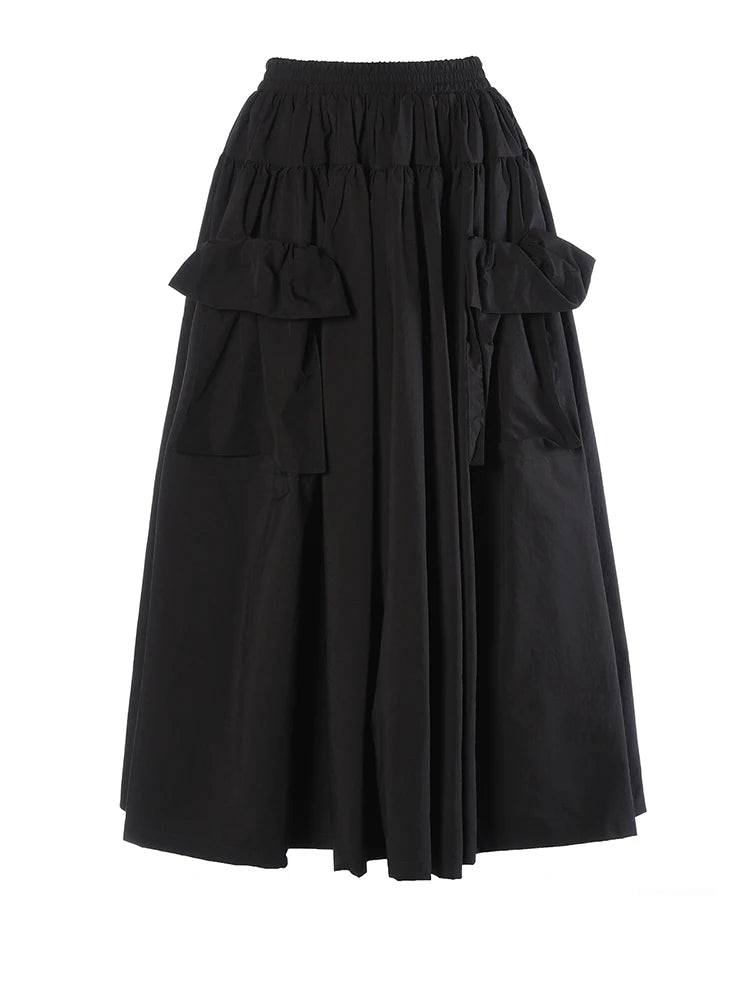 Pocket Detail Pleated Midi Skirt with Elasticized Waist