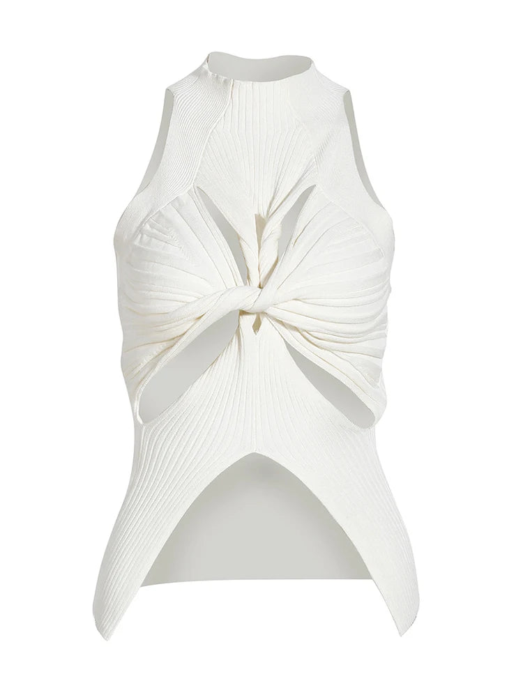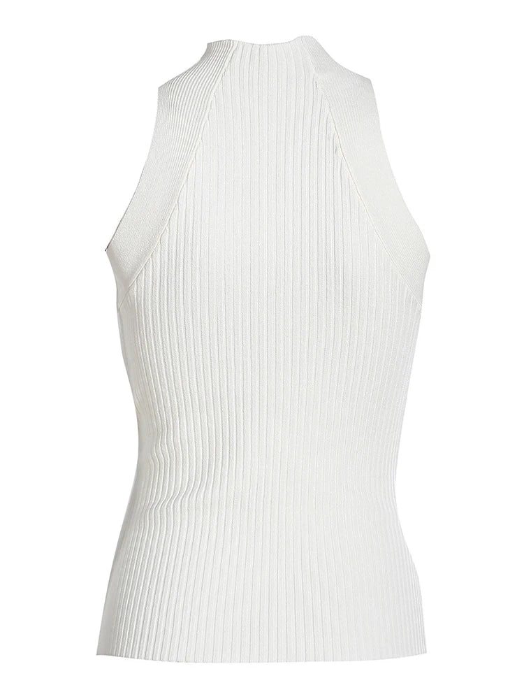 Ribbed Knit Cut Out Detail Tank Top in White