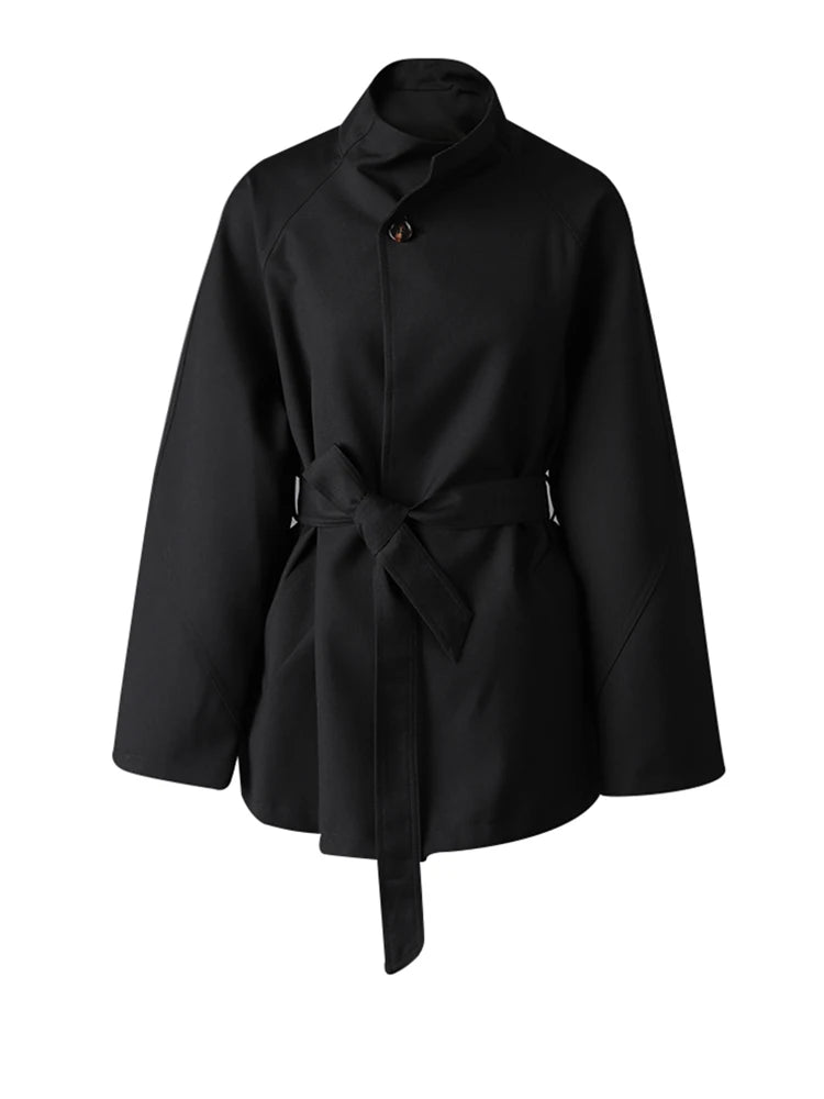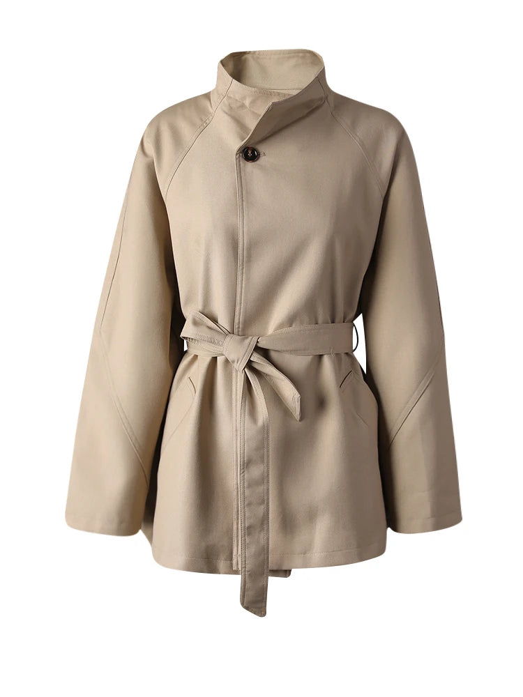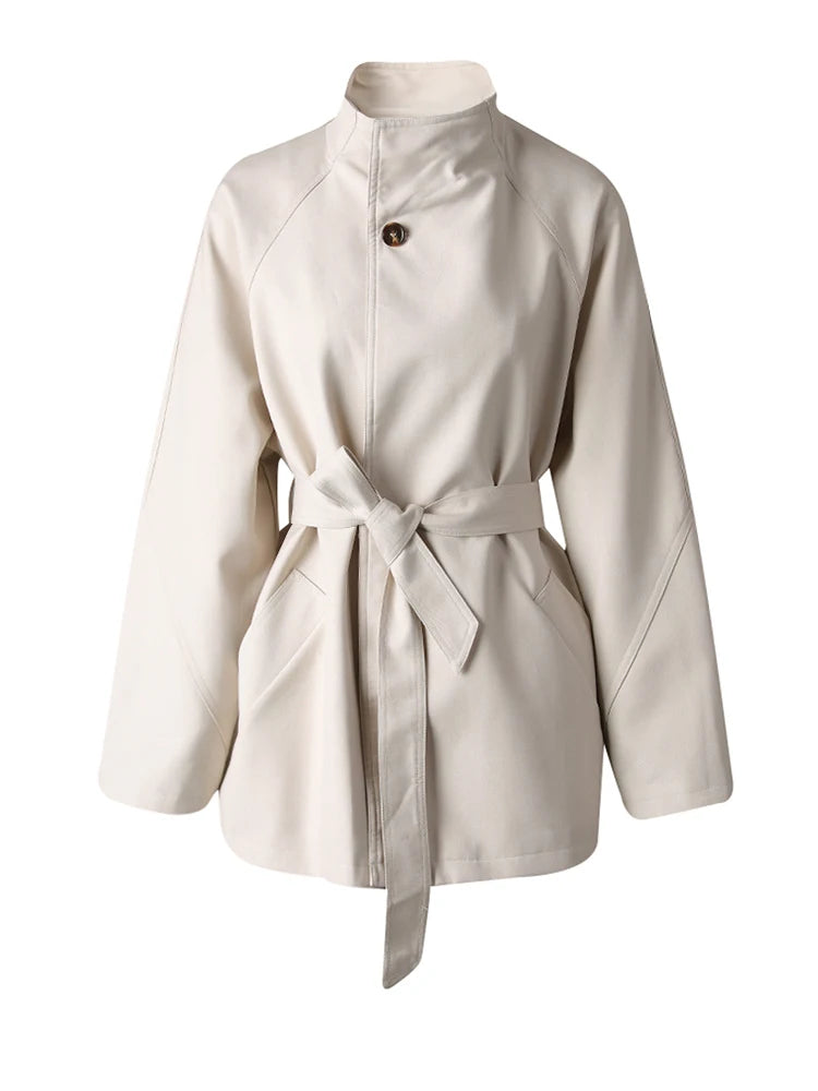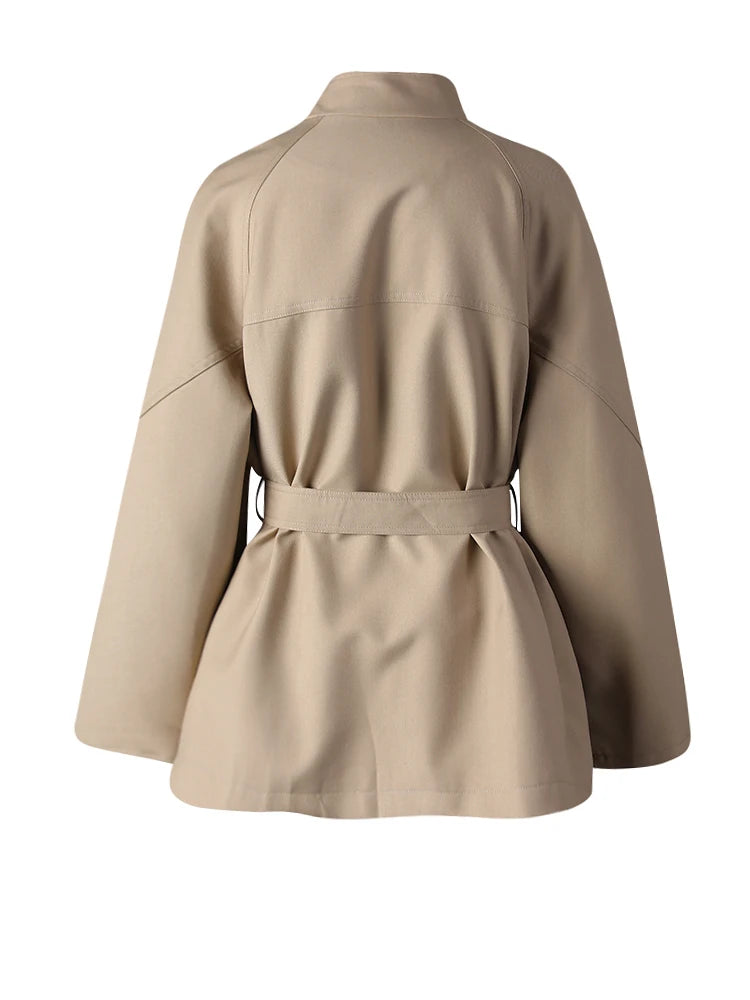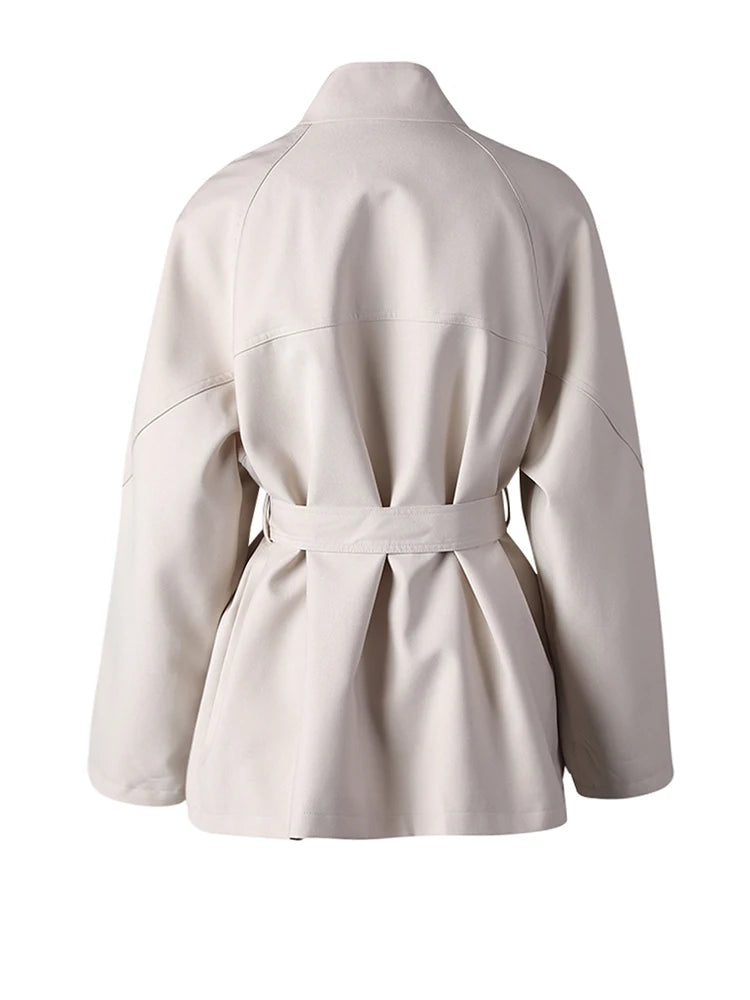 Belted Funnel Neck Oversized Windbreaker Short Trench Coat