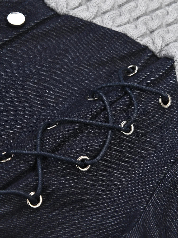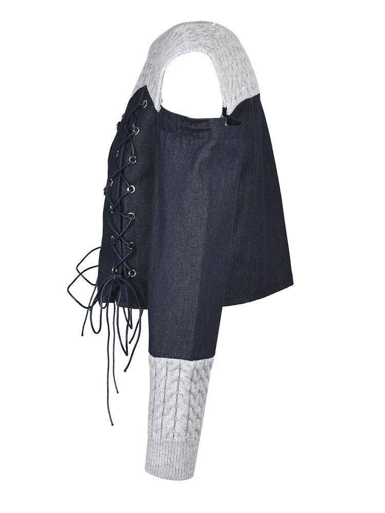 Denim Long Sleeve Corset Top
