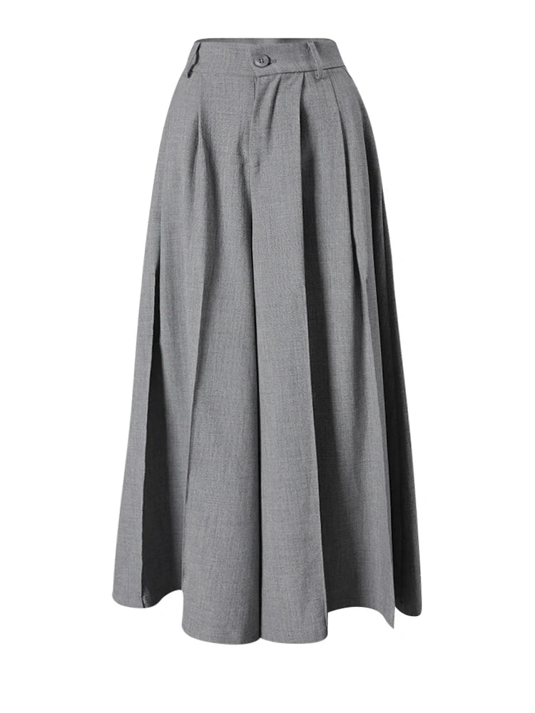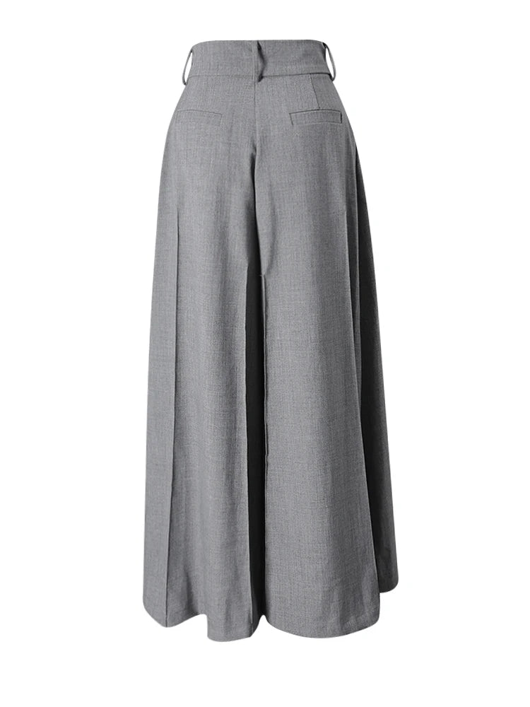 High Waist Pleated Wide Leg Pants in Gray