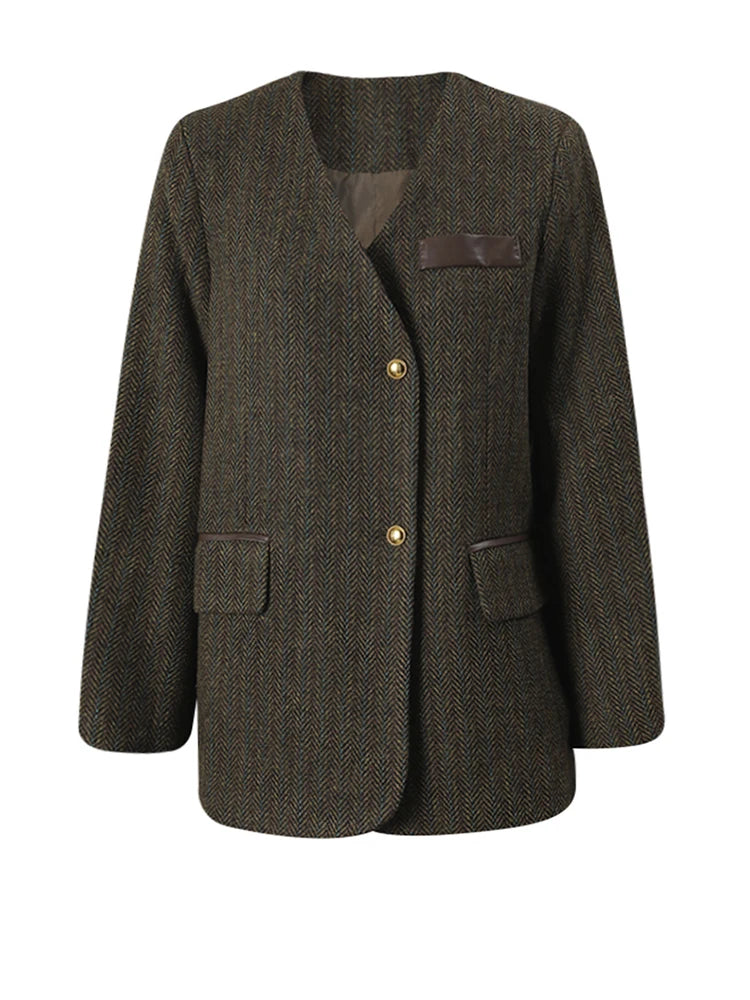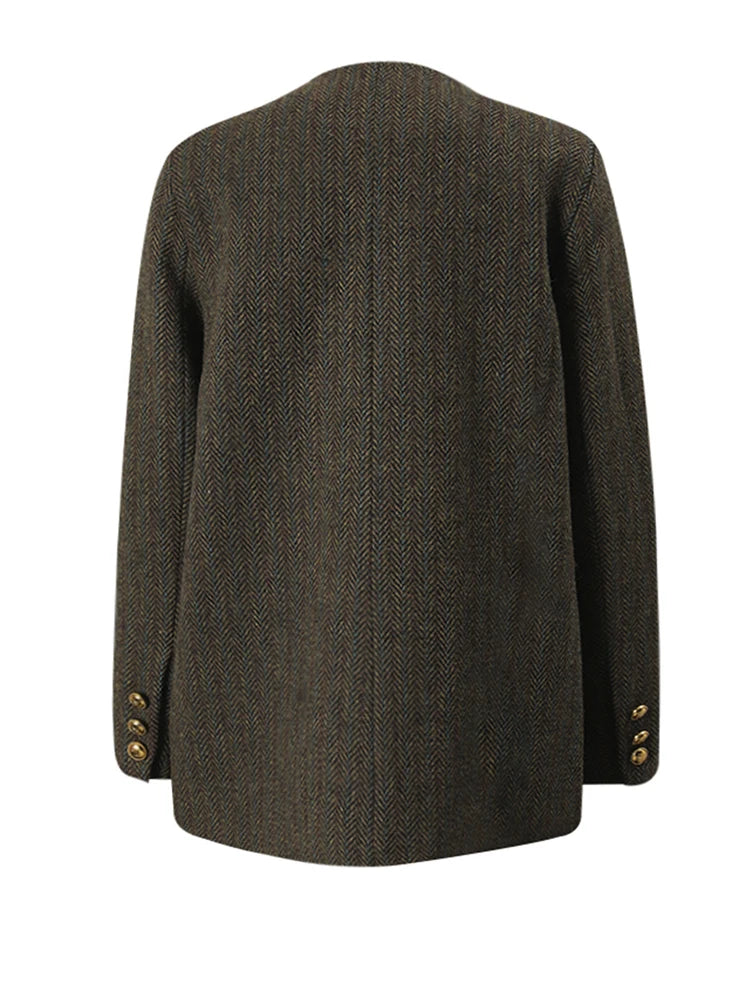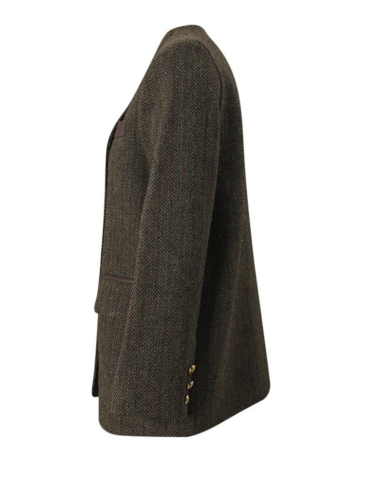 Oversized Collarless Blazer in Coffee