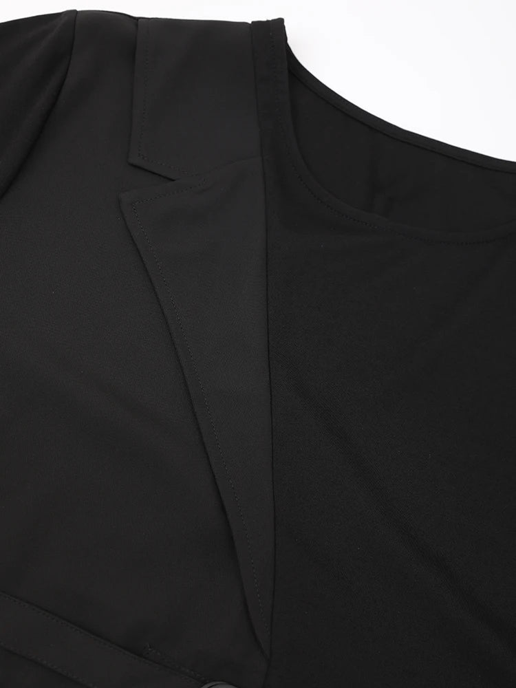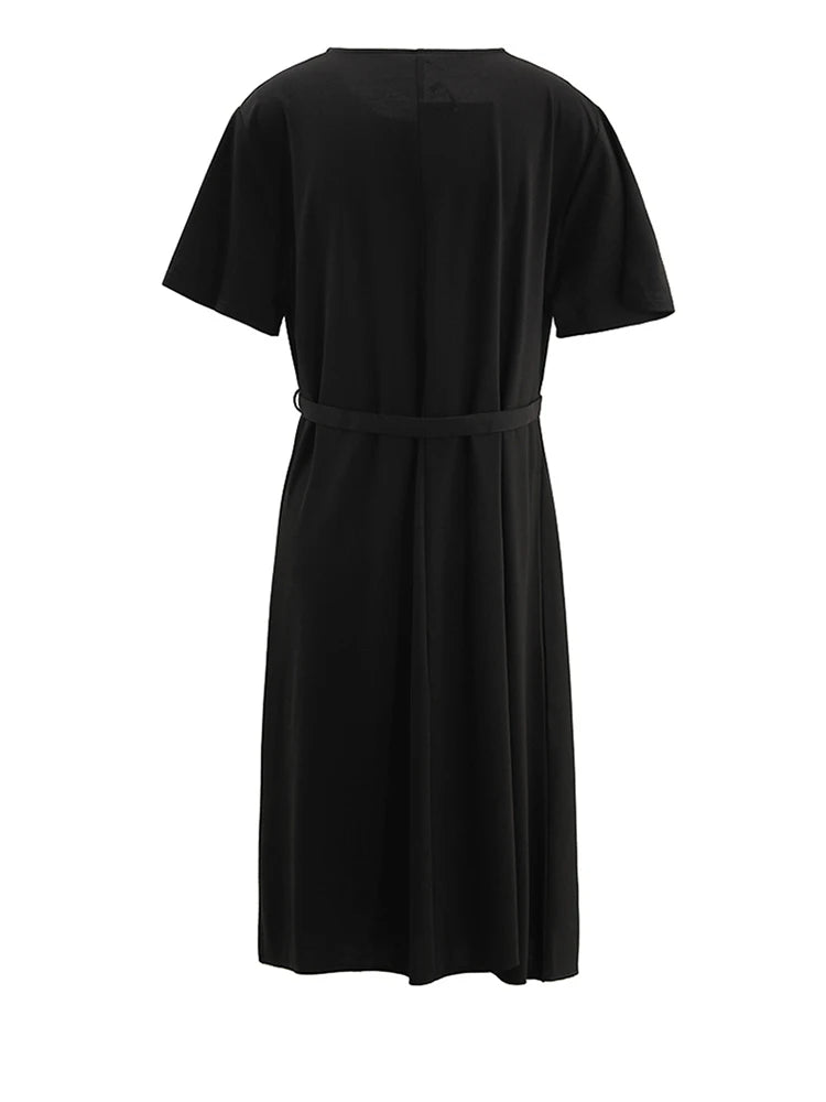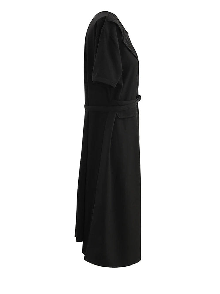 Short Sleeve Belted Oversized Midi Dress in Black