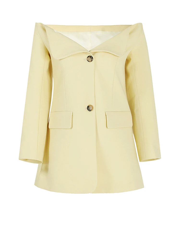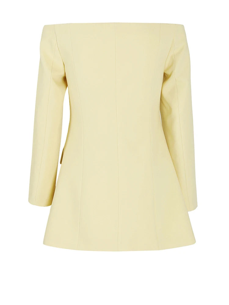 Single Breasted Off Shoulder Blazer in Yellow