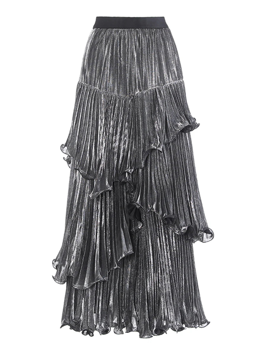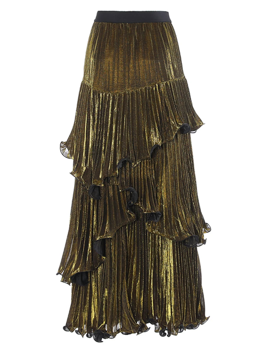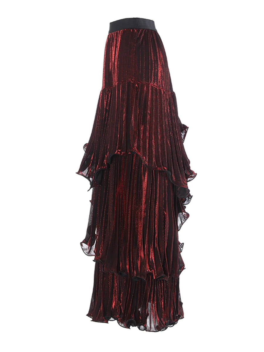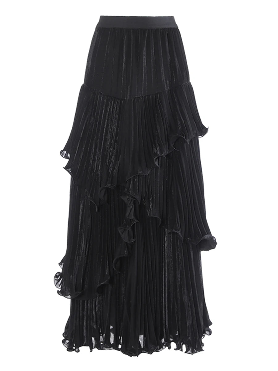 Spliced Ruffle Maxi Skirt