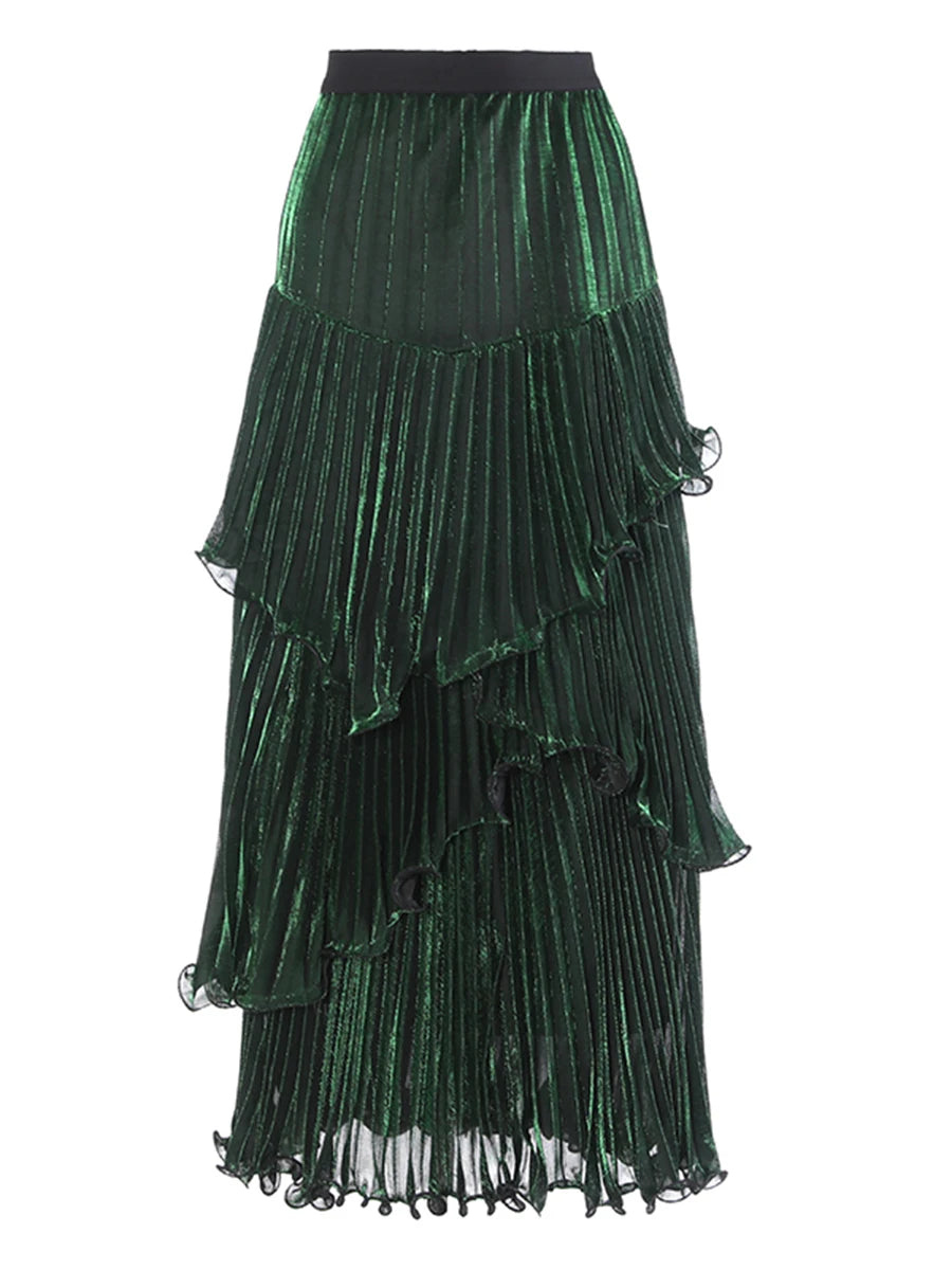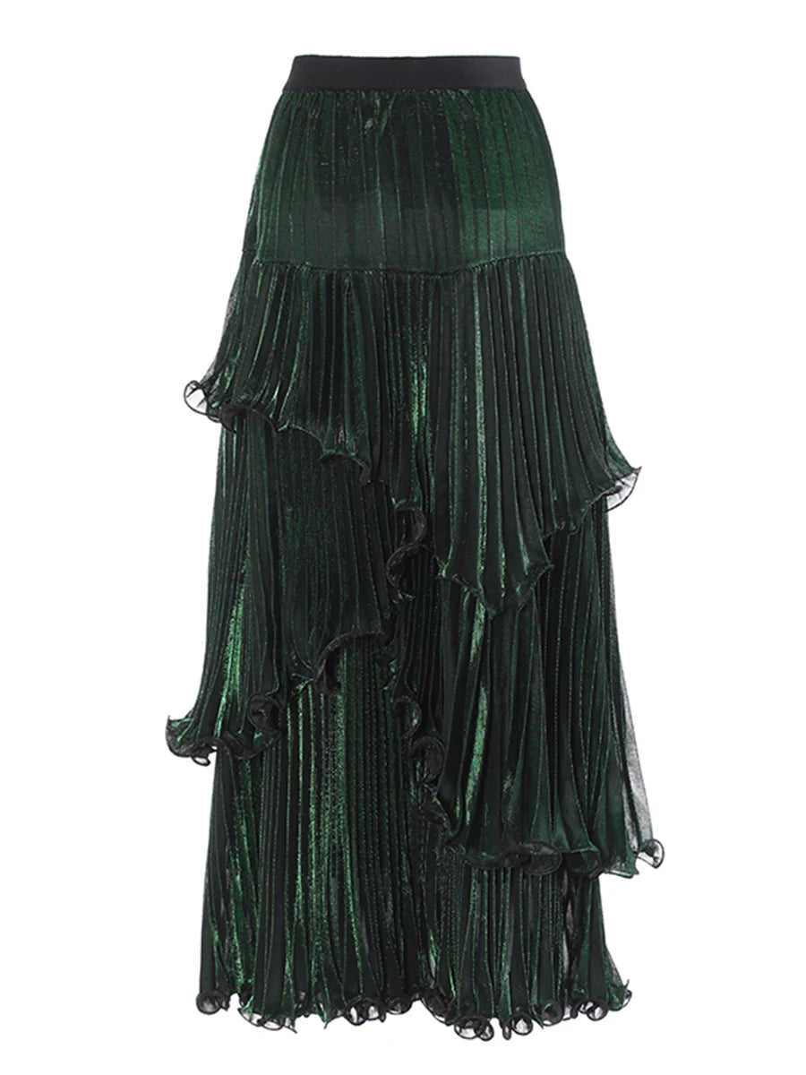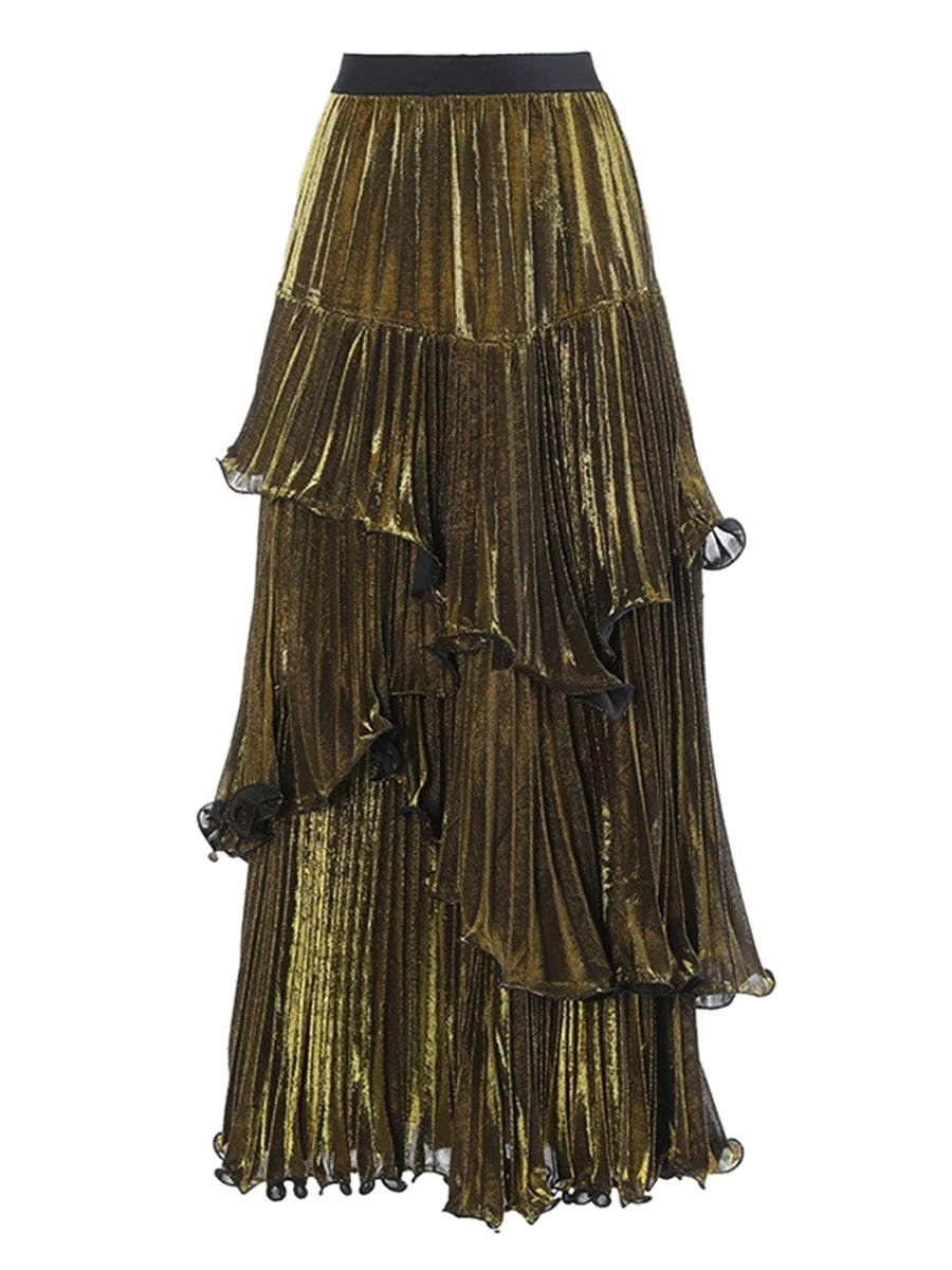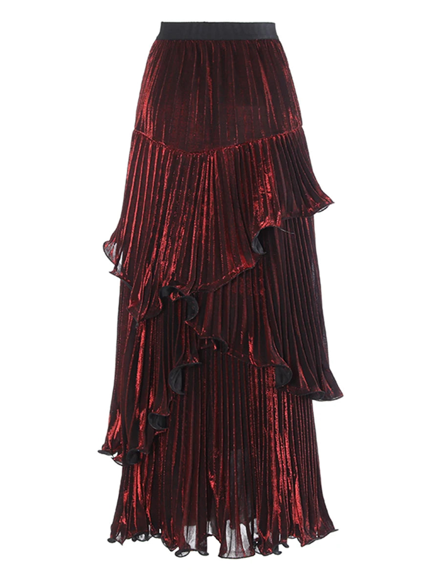Spliced Ruffle Maxi Skirt