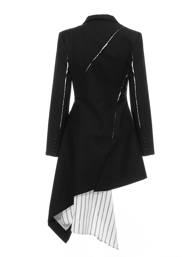 Tailored Pinstripe Blazer Mini Dress with Asymmetric Hem
