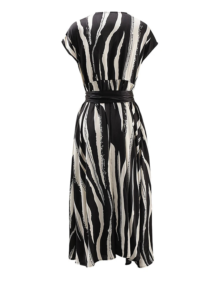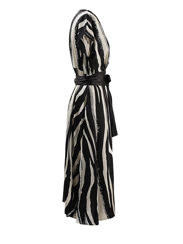 V-Neck Sleeveless Belted Midi Dress in Zebra Print
